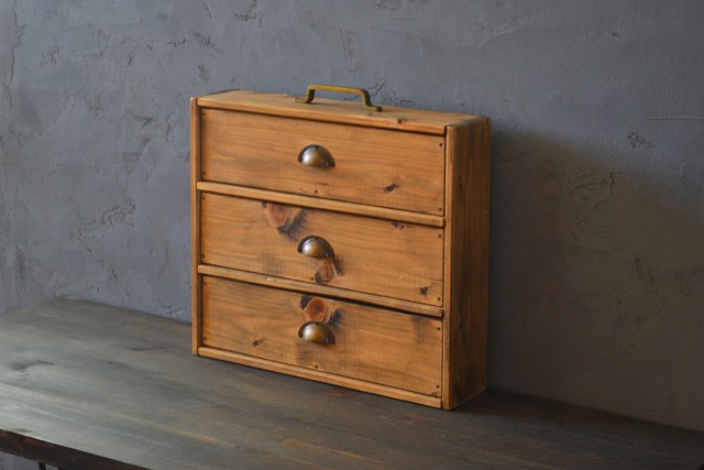 <アウトレット品/数カ所に小傷と節あり> 硬くていい香りの国産ひのきを使い アンティークゴールドの取手をシンプルに付けました。 奥行きが狭いのでどこに置いても邪魔になりません。 木材=ひのき100%(消臭・防虫・アロマ効果あり) 外BOXの背板のみ、ラワン合板5.2㎜厚を使用。 <塗装について> 天然蜜蝋ワックスで木目を生かし、素朴でアンティークな雰囲気になるように塗装しています。 塗装後は丁寧にやすりがけをし、角を落としています。 <サイズ:多少誤差がございます> 外BOX (外寸)奥行き=約9㎝ 幅=約28.7㎝ 高さ=約30.5㎝ 中BOX(1個)(取手含まない) (外寸)奥行き=約7.5㎝ 幅=約26㎝ 高さ=約8.5㎝ (内寸)奥行き=約5.5㎝ 幅=約24㎝ 高さ=約7.5㎝ <必ずご一読ください> ◯アウトレット品につきましては主に在庫処分品、多少傷があるものや塗りムラのあるものなどが対象となりますのでご了承ください(使用上の不具合箇所、目立つような大きな傷などがある場合には明記いたします)。 ◯照明等により、添付画像と雰囲気が多少異なる場合がございます。 ◯無垢材のため割れや反り等が生じることがあります。 ◯ハンドメイドのため多少の誤差などが生じる箇所もございます。 ◯塗料を染み込ませているため、例えば白いテーブルなどに長時間接触させていると色移りすることがございますのでご注意ください。 ◯新品の金具を特殊液で錆びさせたり予めキズをつけて塗装したり等、エイジング加工の良さとしてどうかご理解いただける方でのご購入をお願いいたします。 ◯元より節目や傷のある木材を使用した商品となりますので細かい箇所が気になる方はトラブル防止のため、予めご注文をお控え願います。 <配送方法につきまして> 日本郵便の定形外郵送にてお届けします。 発行後、2日~3日後の到着予定です。 追跡、補償はできかねます。
