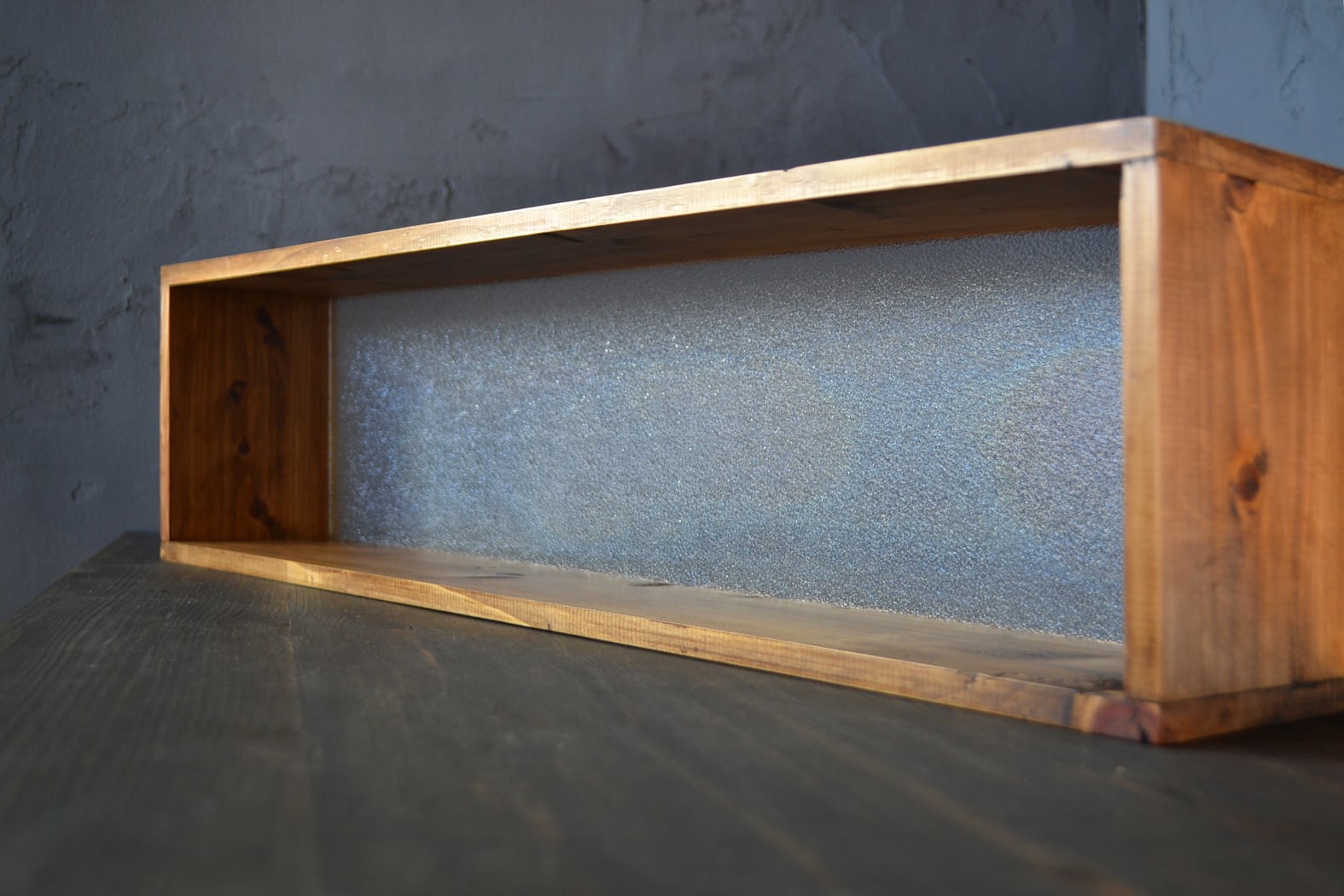 日本産ひのきの木枠にレトロガラスを挟み込みました。