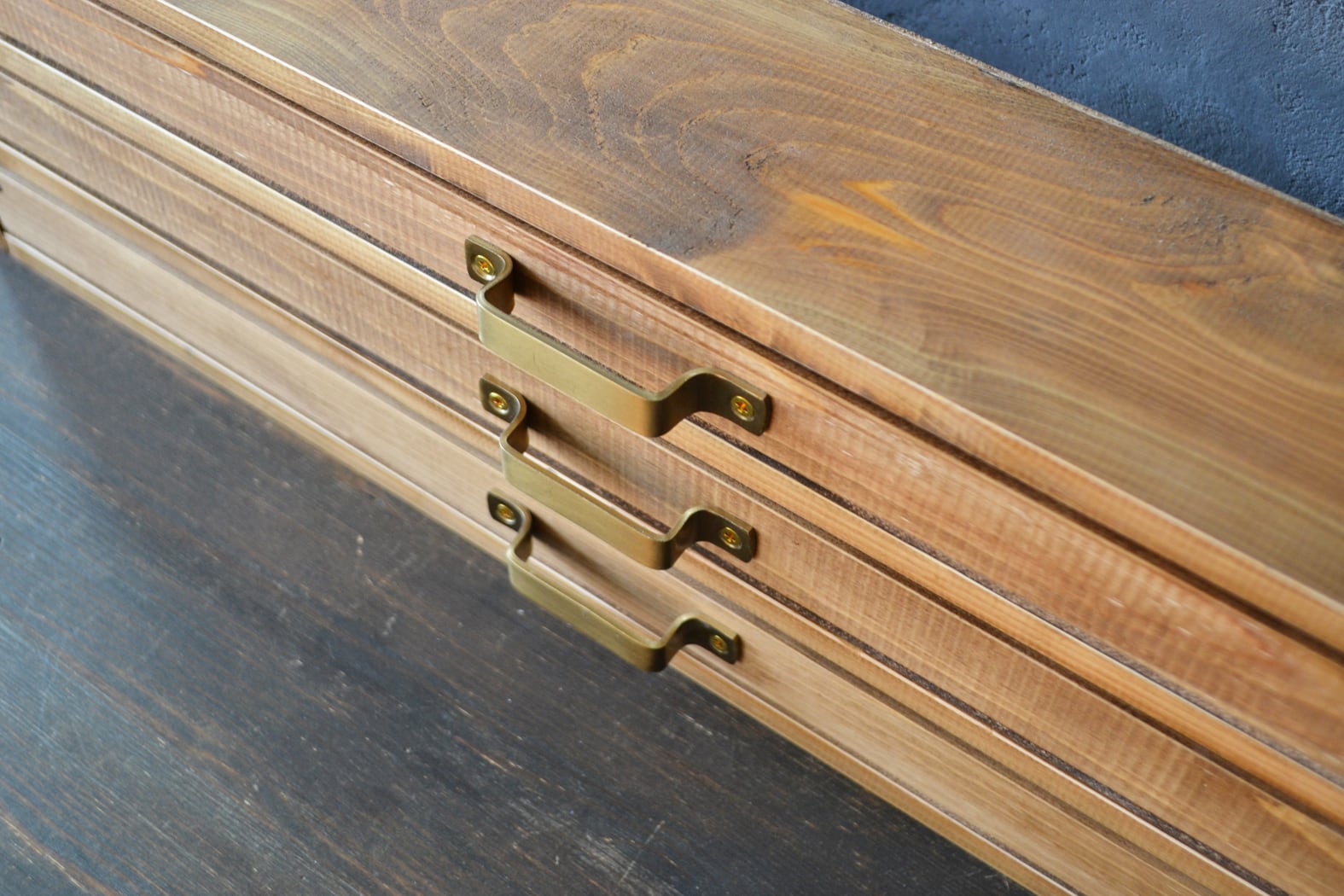 天然蜜蝋由来主成分のワックスで木目を生かし、素朴でアンティークな雰囲気になるように塗装しています。