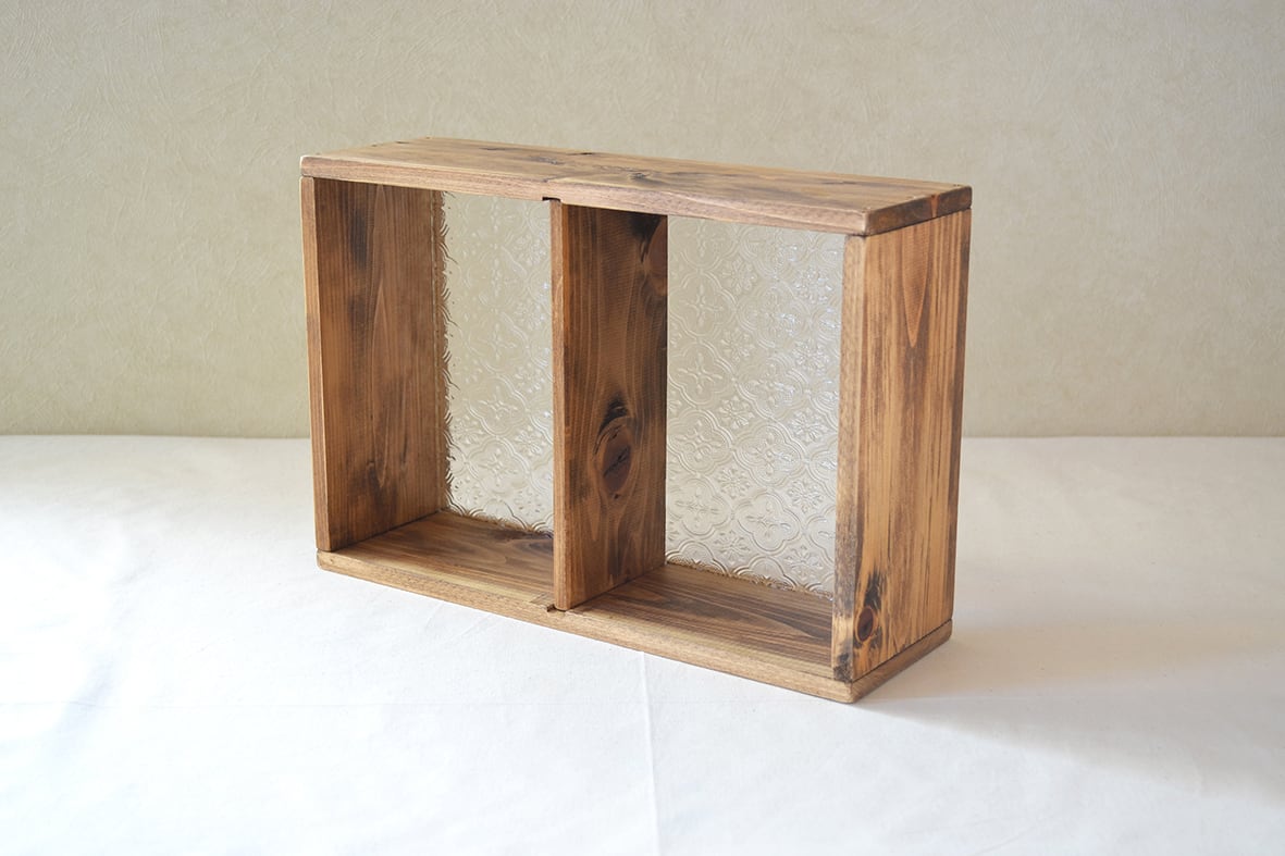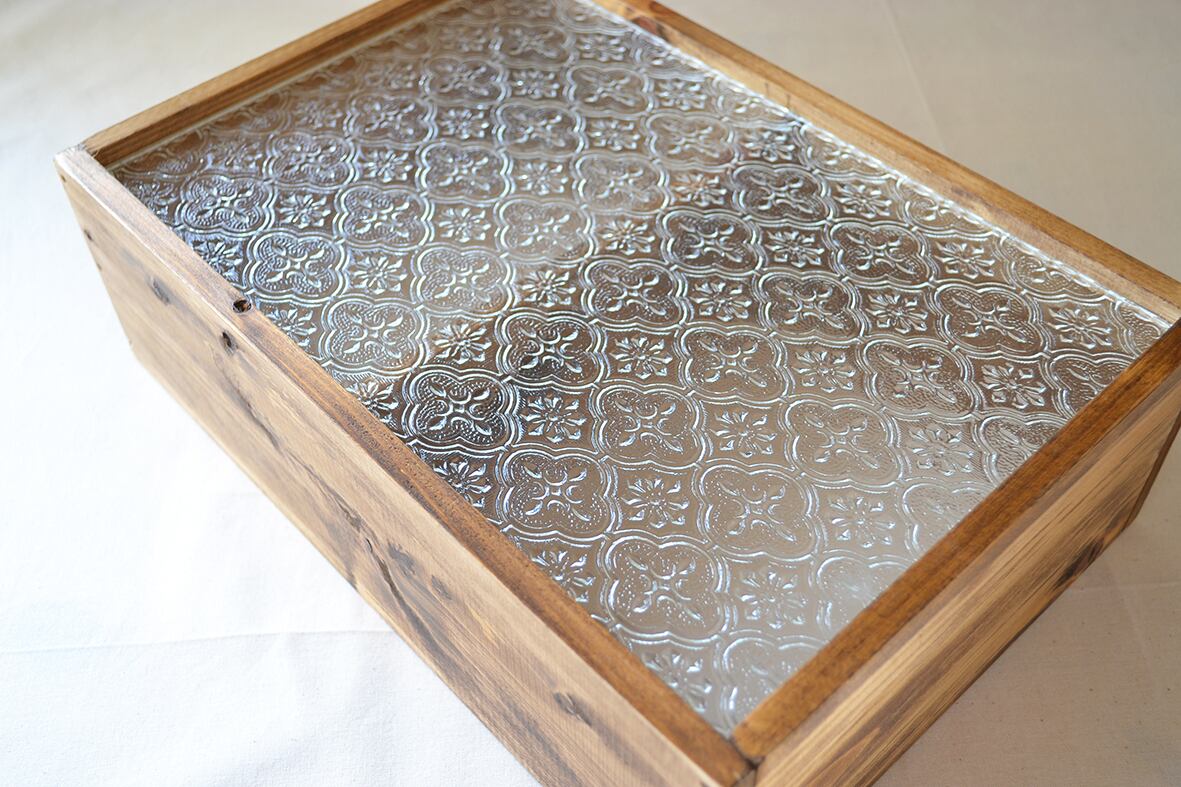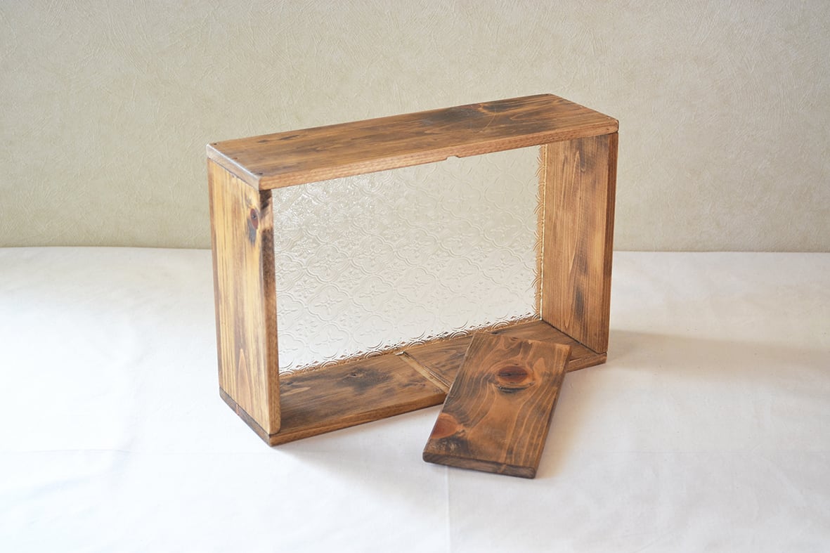 国産ひのきの木枠に4ミリ厚のフローラガラスを挟み込みました。