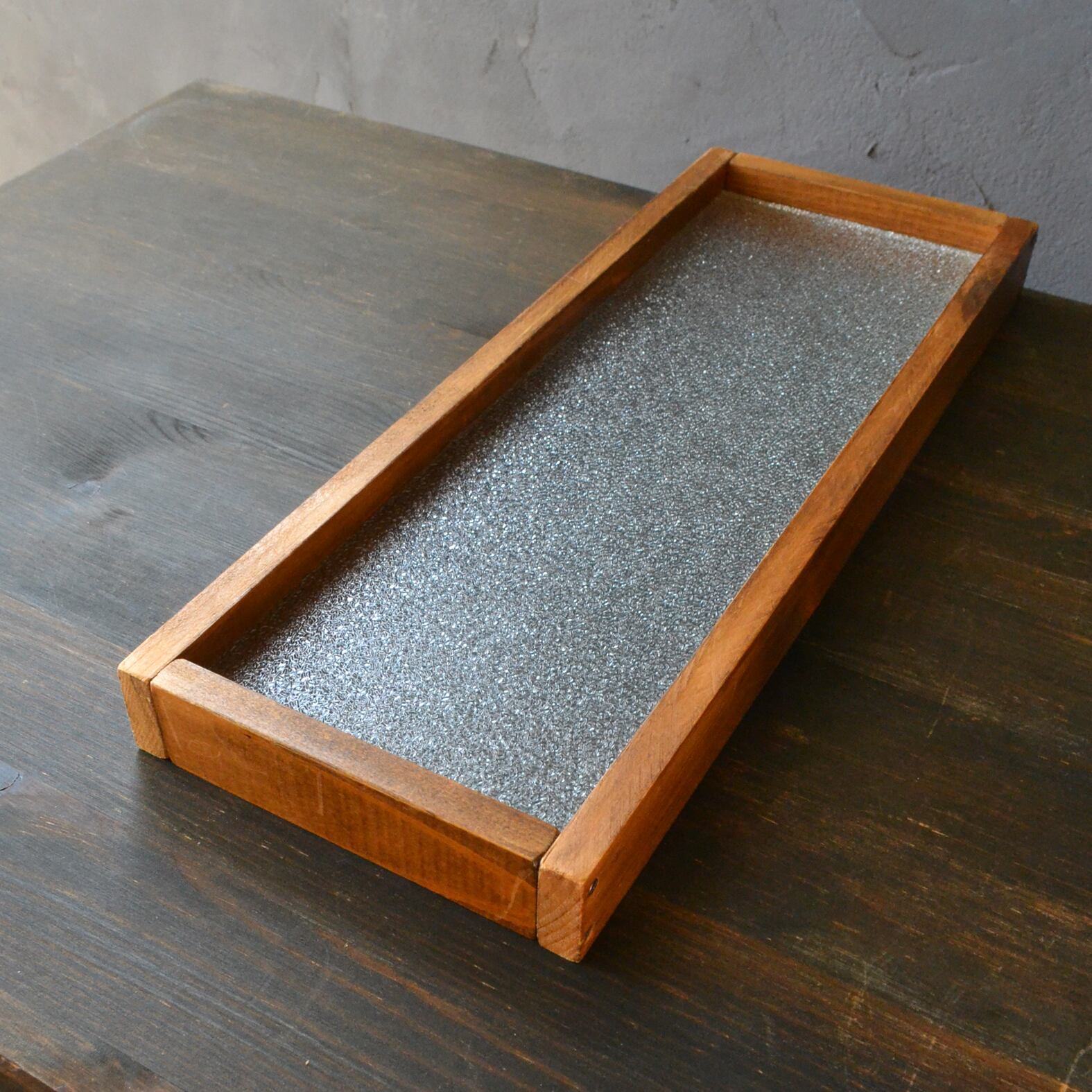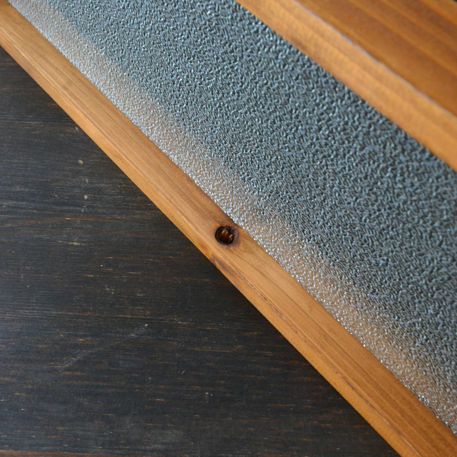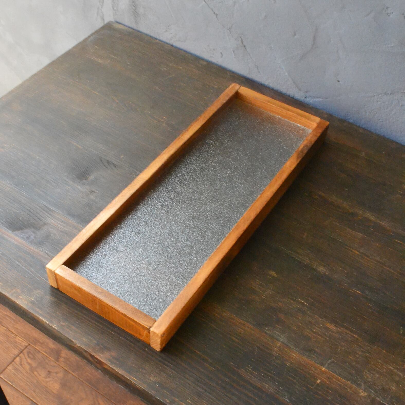 国産ひのきの木枠に3ミリ厚のレトロガラスを挟み込みました。