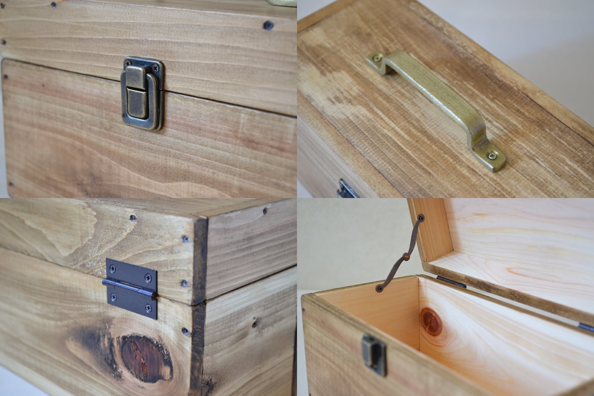 0310mito 国産ひのきのトランクBOX 木製ケース Mサイズ アンティークゴールド角