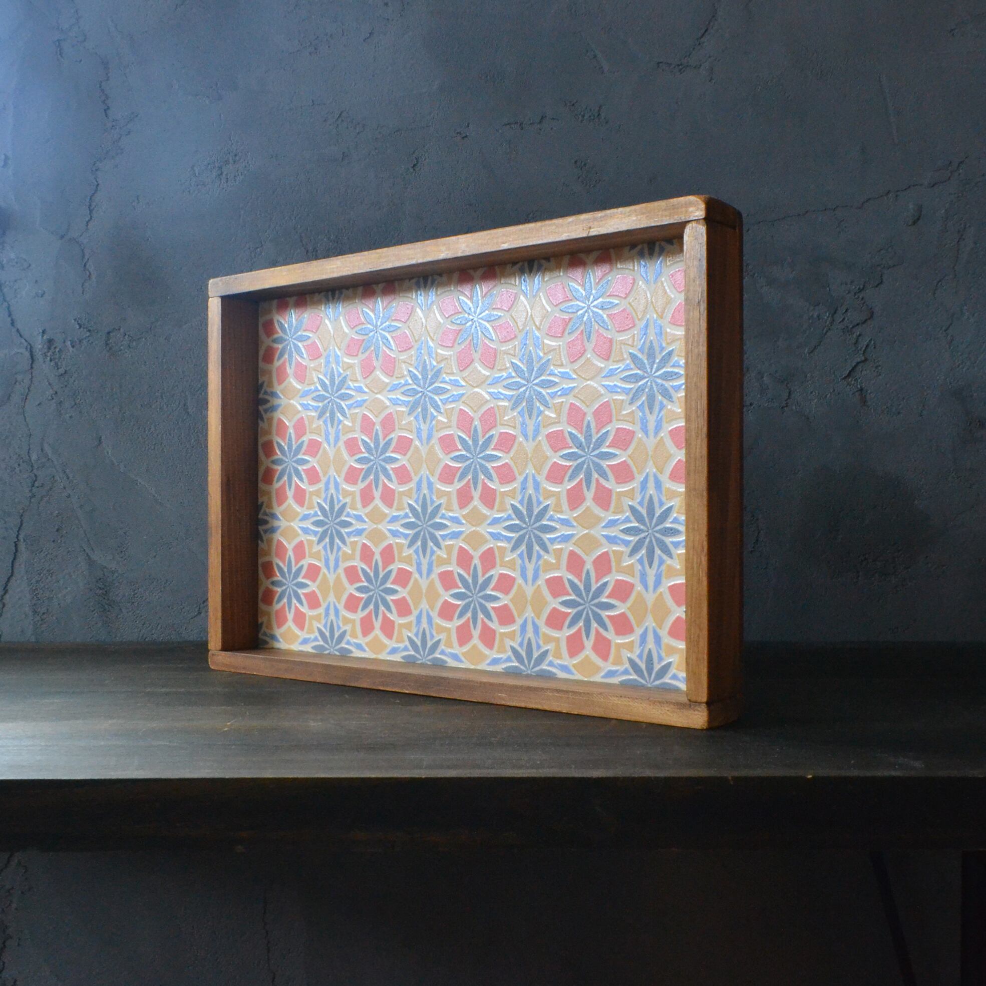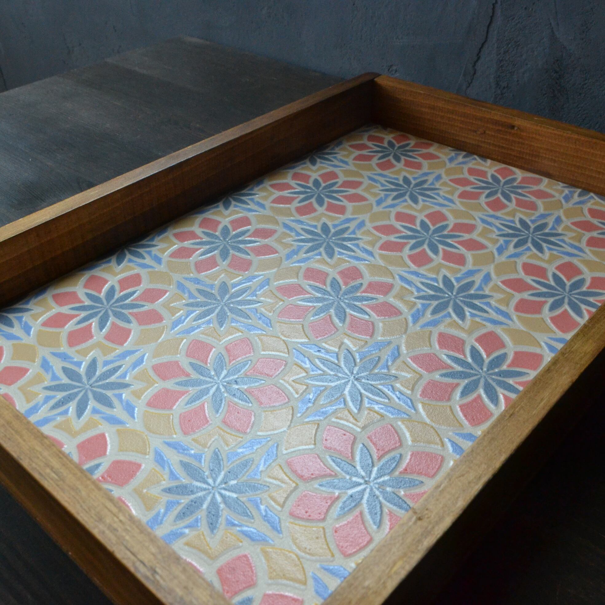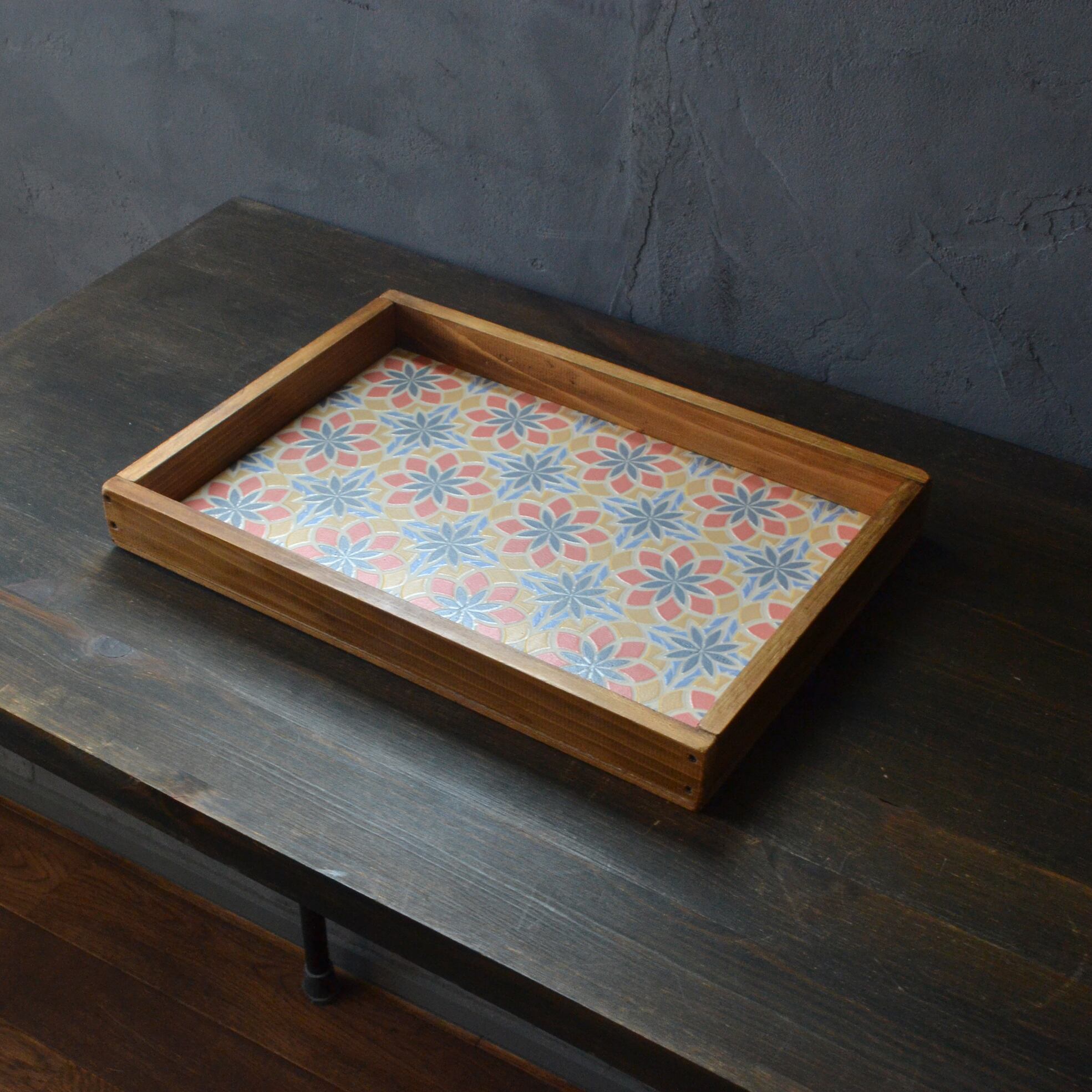 輸入壁紙を使った小洒落た雰囲気のカフェトレイです。