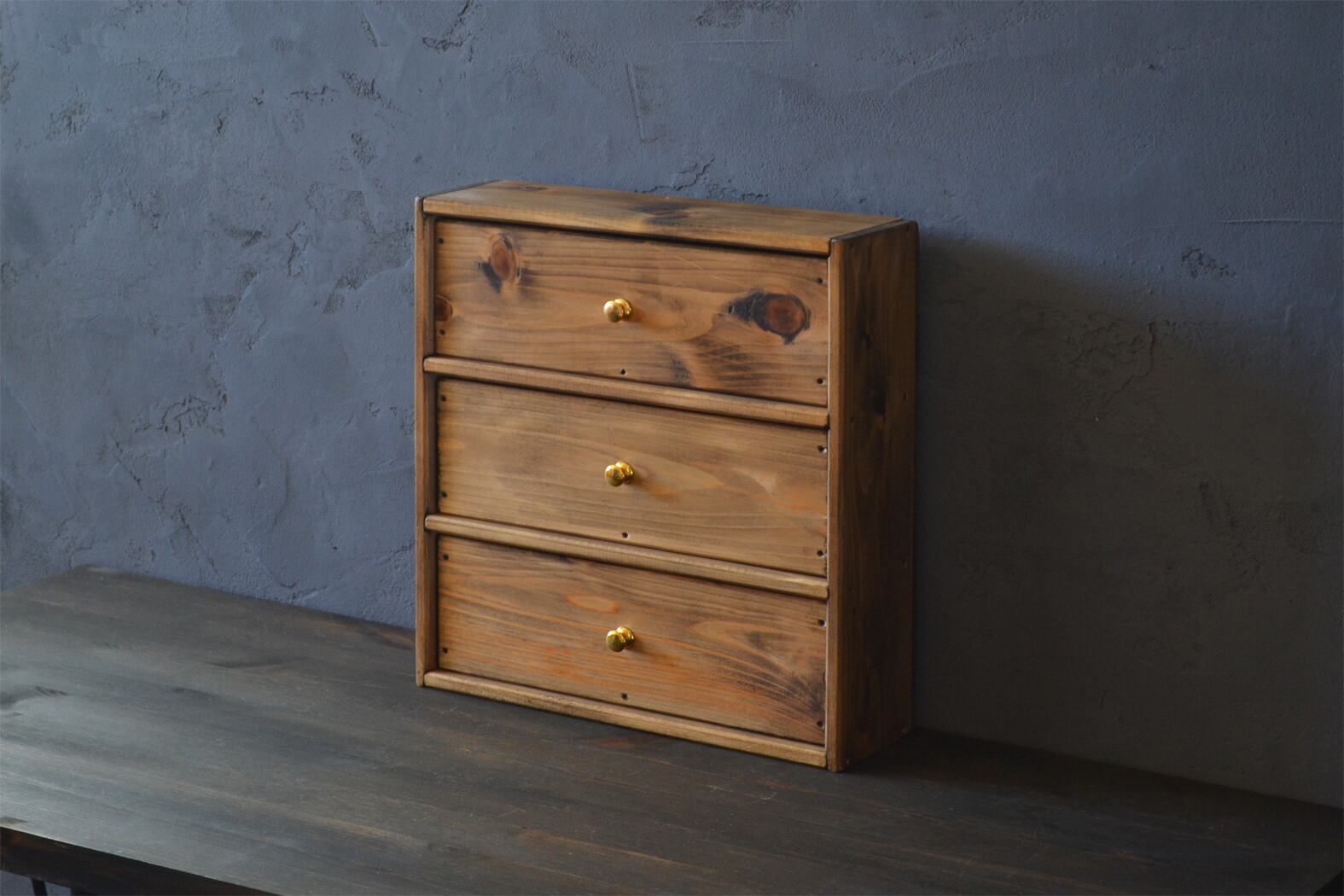 天然蜜蝋ワックスで木目を生かし、素朴でアンティークな雰囲気になるように塗装しています。