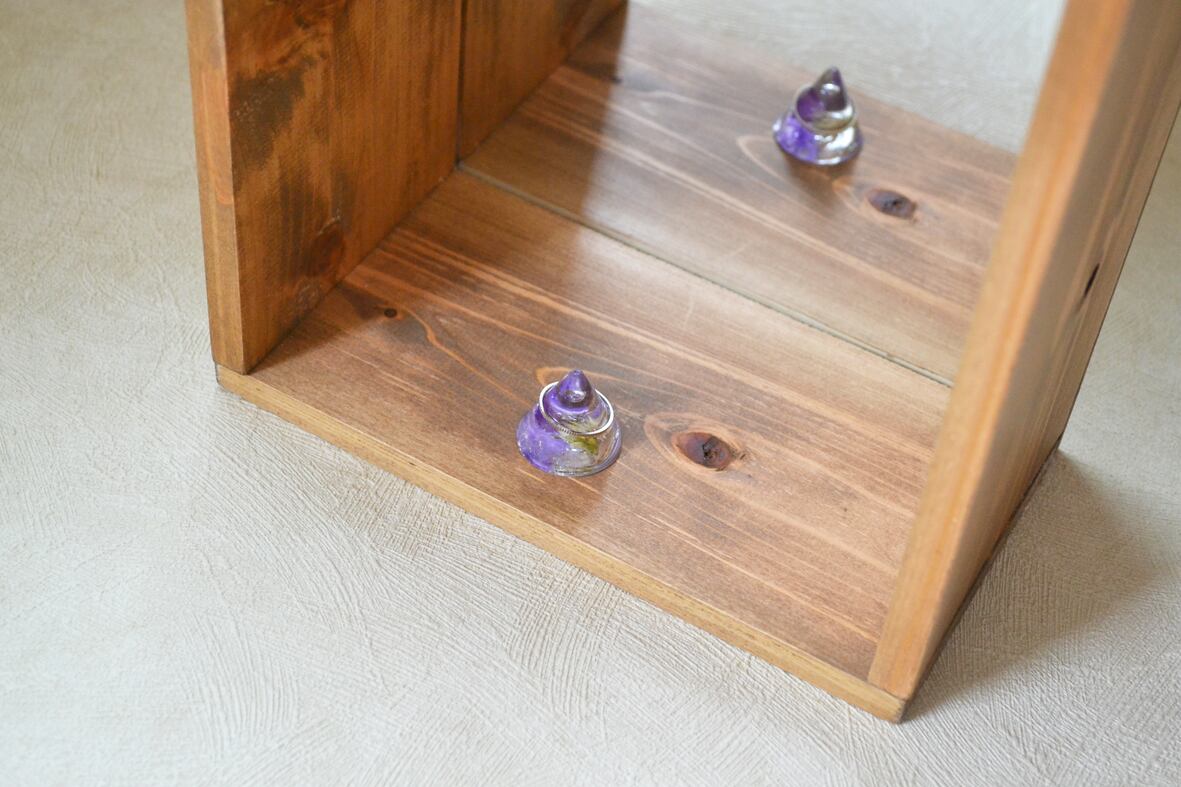 硬くていい香りの国産ひのきに鏡を挟み込みました。