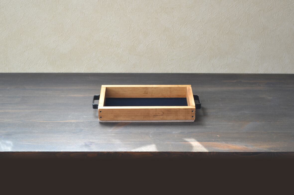 0310mito 国産ひのきのちいさいトレイ(ベロア生地×黒のアイアン取手)