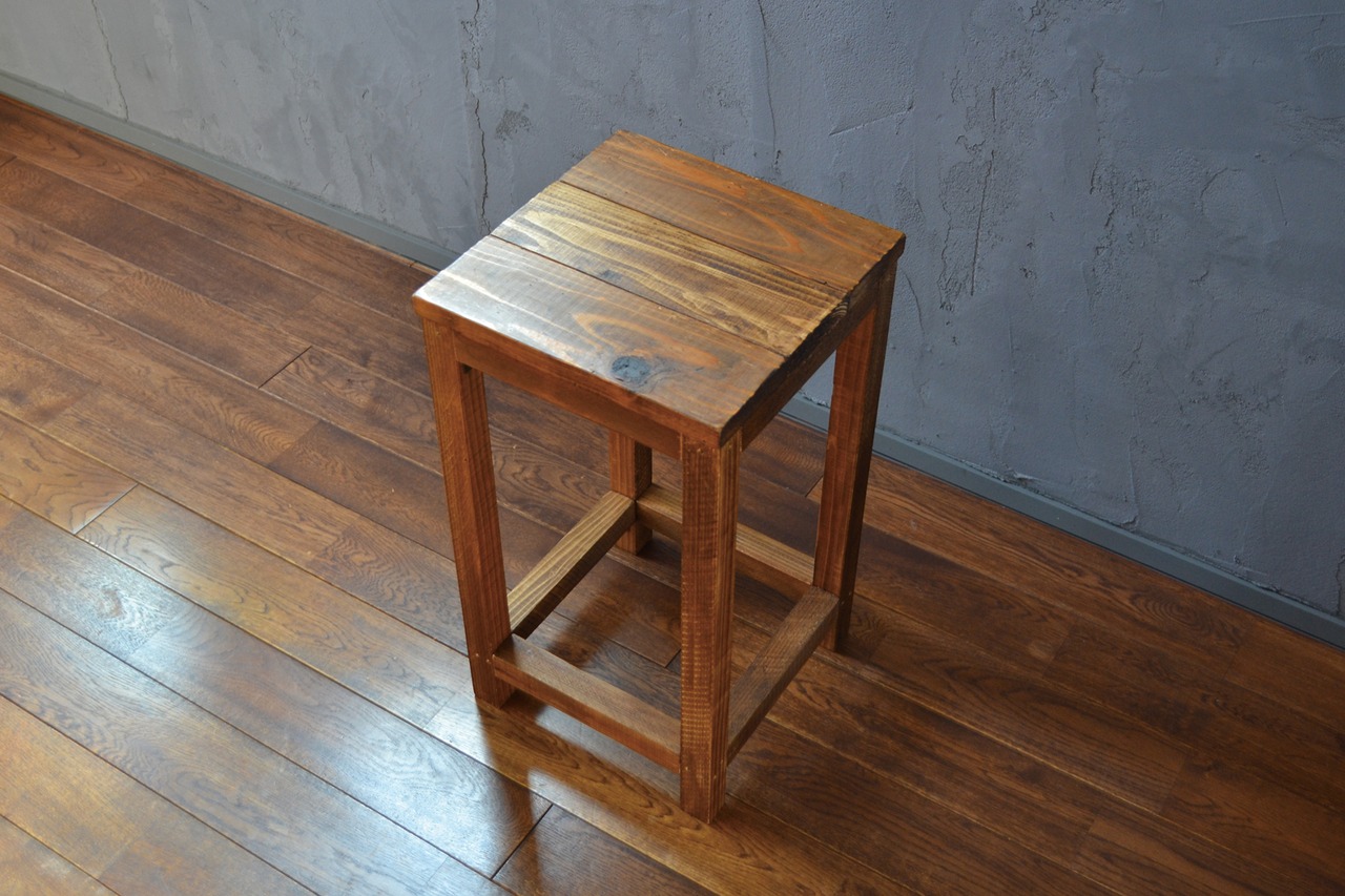 手作り感を残しながらもシンプルで落ち着いた雰囲気のスツールです。